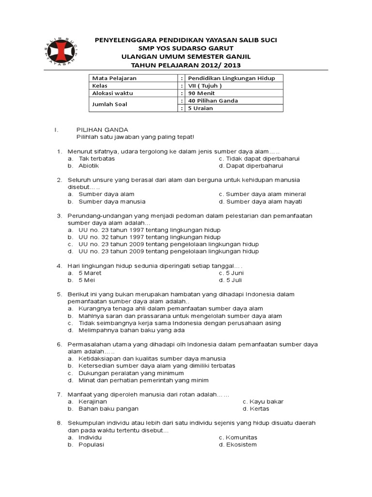 Soal uas plh kelas 9 semester 1 dan kunci jawaban. Berikut ini adalah kumpulan dari berbagi sumber tentang silabus daring kelas 6 semester 1 yang bisa gunakan untuk file revisi dan diunduh. Soal UAS Jawaban PLH Pendidikan Lingkungan Hidup Kelas 5 V Lima Semester 2 II 2019 Pilihan Ganda KUNCI JAWABAN IPS TryOut US-UN SD Kelas 6 SD 2020 SOAL KUNCI JAWABAN US BAHASA INDONESIA SD UJIAN SEKOLAH CONTOH BAGIAN 3.
