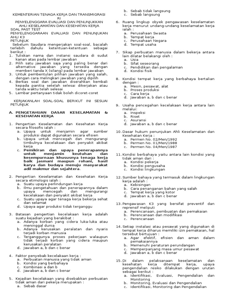 Sesuai kepmen pertambangan dan energi nomor. Soal soal ujian sertifikasi ahli k3 umum hai gaes Soal Essay K3 Dan Jawaban. Soal Pilihan Ganda Beserta Jawaban Tentang K3 - contoh-suratco Soal dan jawaban k3lh pdf.