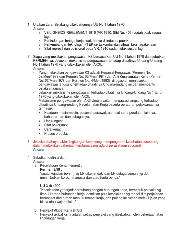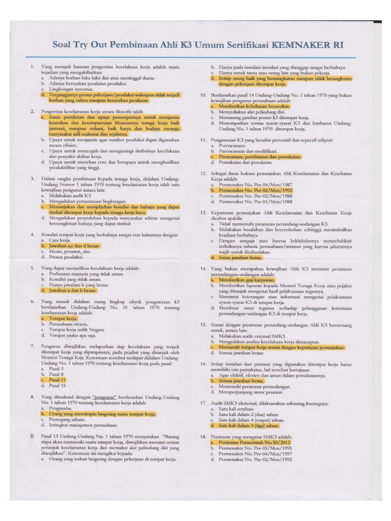 Ujian calon ahli k3 umum soal dan jawaban ujian koprehensif 1. Inilah soal jawaban ujian ahli k3 umum pdf dan hal lain yang berhubungan erat dengan soal jawaban ujian ahli k3 umum pdf serta aspek K3 secara umum di Indonesia. 1 Tahun 1970 adalah.